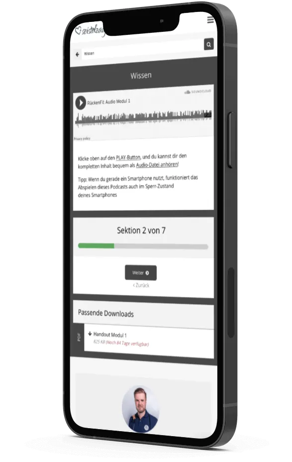 Arbeite die acht Einheiten in deinem Tempo durch. Nach erfolgreichem Abschluss erhältst du automatisch deine Teilnahmebescheinigung als PDF.
